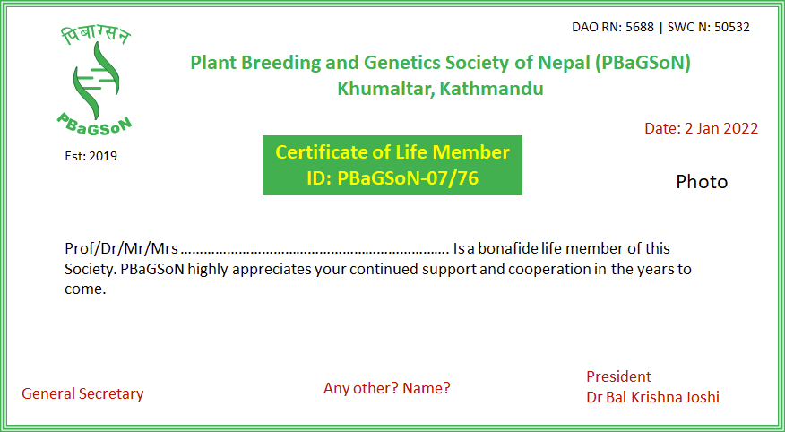 A dignified citizen of Nepal holding a minimum of Bachelor Degree focusing in plant genetics, breeding, biotechnology, seed science, biostatistics, agrobiodiversity or other qualifications as may be approved by the Executive Committee, and affiliated with any institution mandated for research, education and extension in the country can be a GM on payment of GM fee every year.