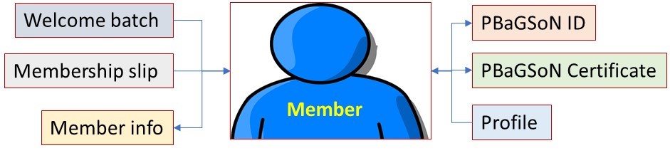 To be a member, they should provide member info/ application, and profile. Then Society provides membership slip, welcome batch, ID and certificate. Member info and profile will be compiled and made available online.